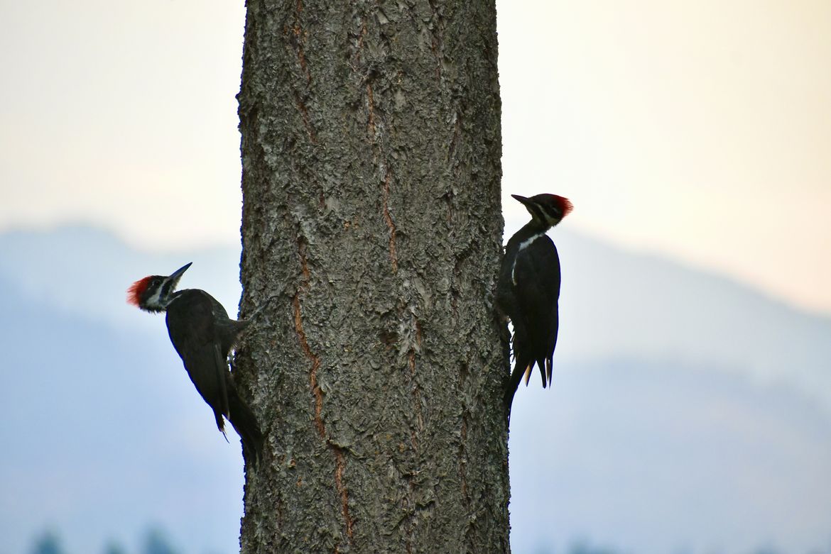 Pileated woodpeckers having breakfast, Usk, WA, 8-31-25