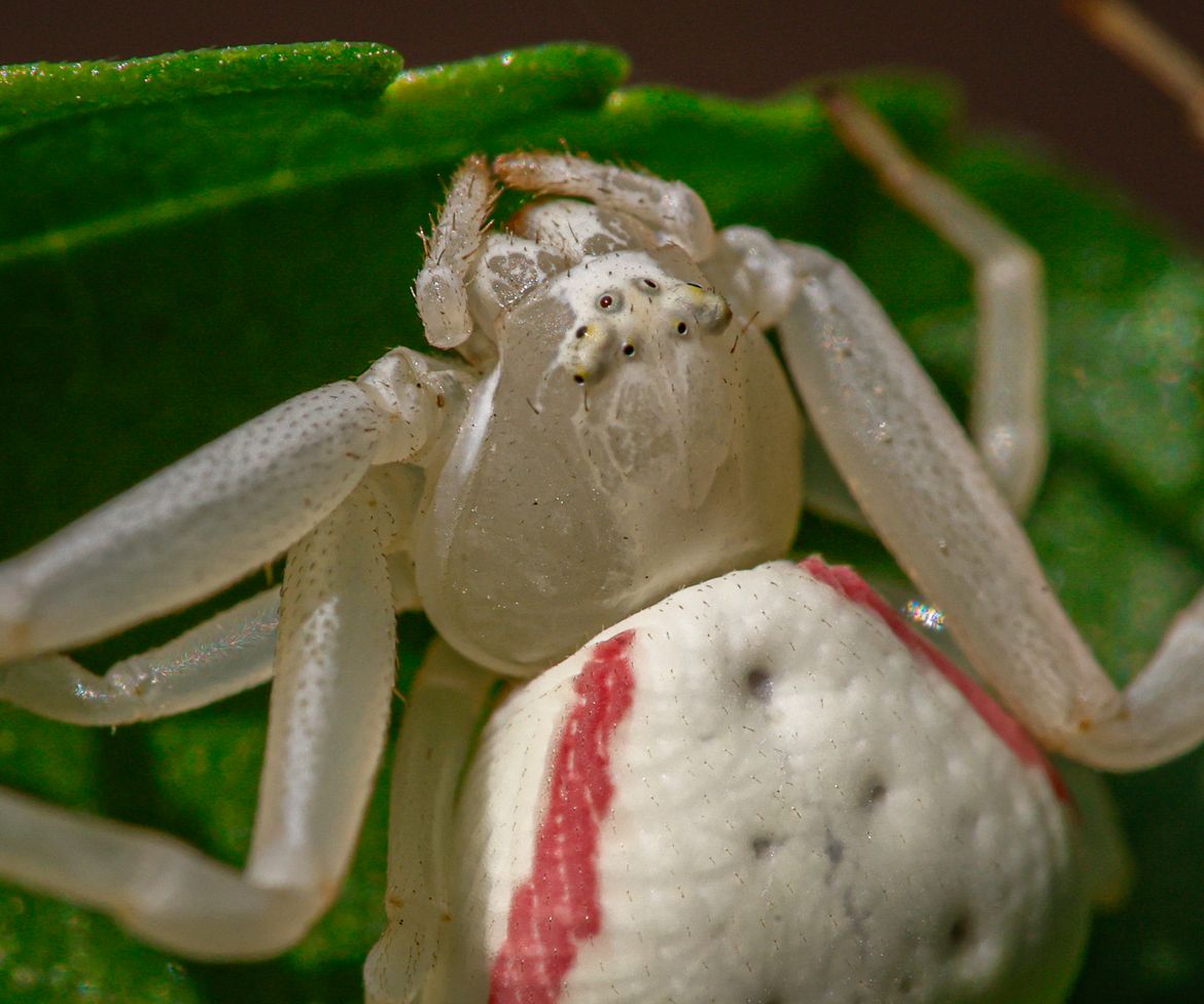 Goldenrod crab spider, photo from backyard garden. Misumena vatia feed on common insects, often consuming prey much larger than themselves. They use venom to immobilize their prey, though they are harmless to humans. They face threats due to parasites and larger insects. These spiders may be yellow or white. This ultimately depends on the flower on which they are hunting (active camouflage). Younger females especially, which may hunt on a variety of flowers such as daisies and sunflowers, have a strong tendency to adapt to the color of the surrounding flower.
