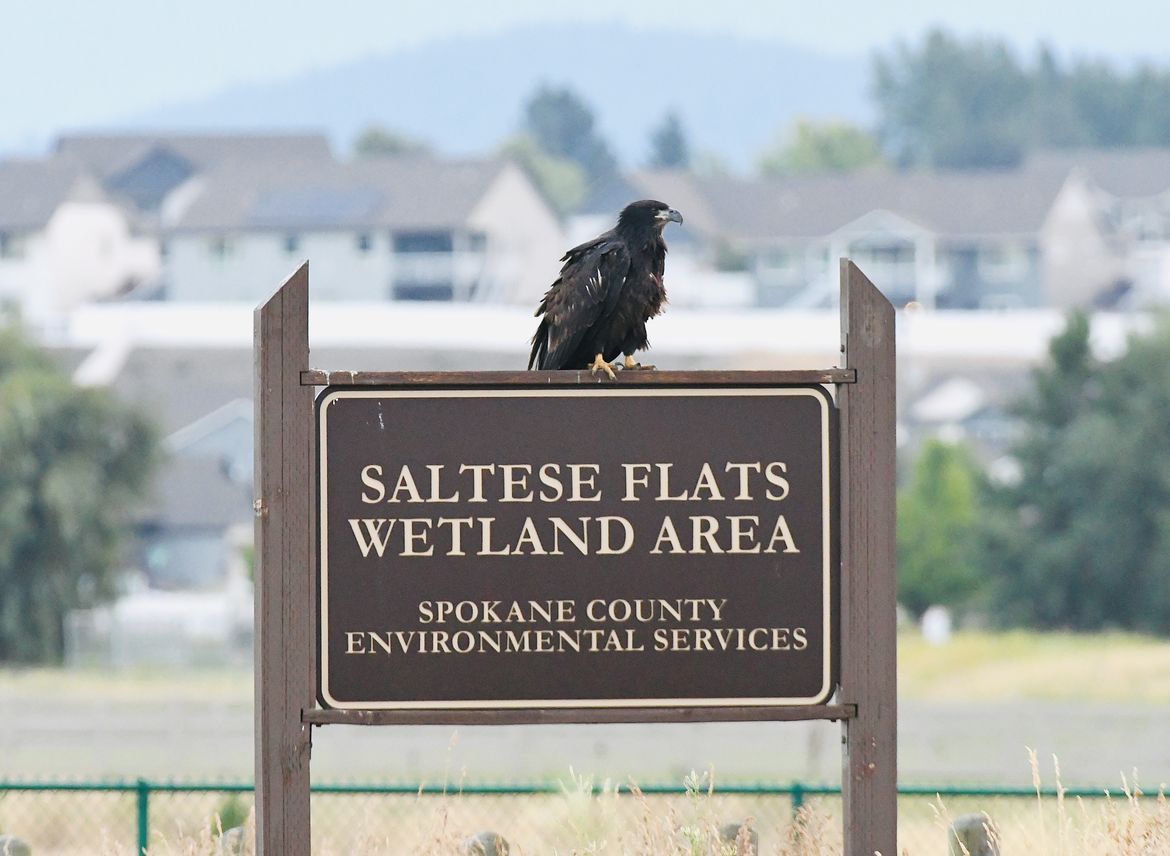 A fledgling bald eagle welcomes visitors at Saltese Flats. Taken 7/19/25