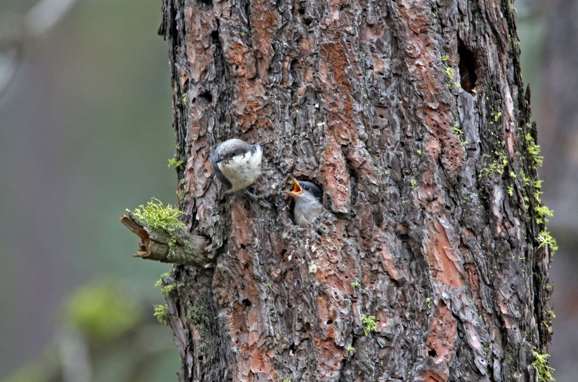 A pygmy Nuthatch chick waits to be feed by either mom or dad both feed. I found this nest about two weeks ago and to day is the first time I have gotten to see the chicks they will fledge pretty soon. Turnbull wild life refuge. 7 22 2025