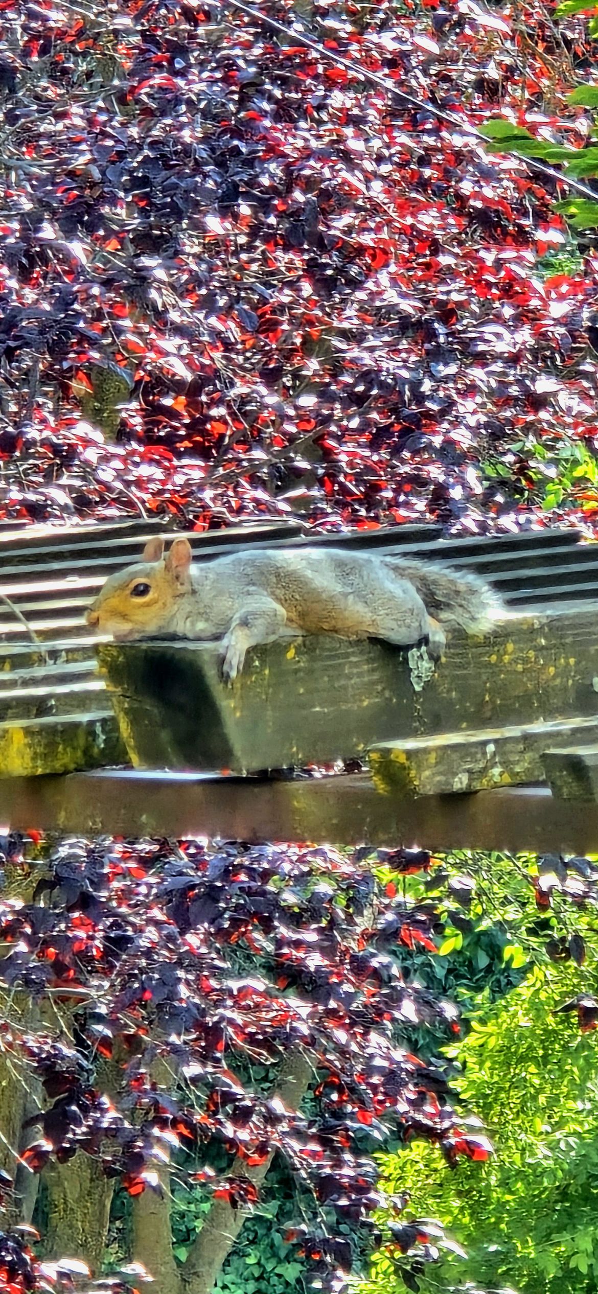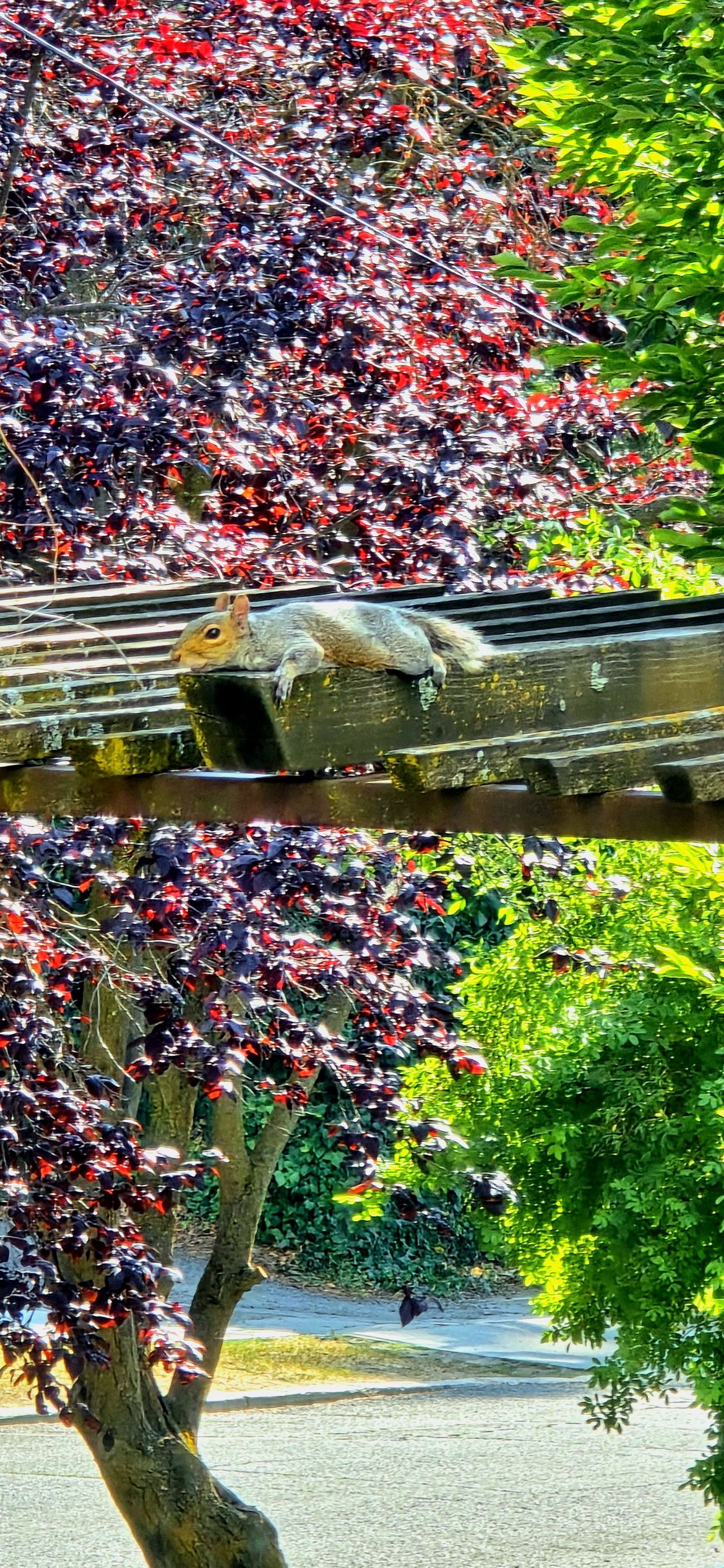 Photo of a squirrel lounging, taken on the south hill Wednesday afternoon(07/23/2025).