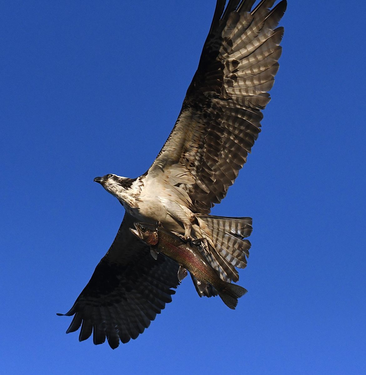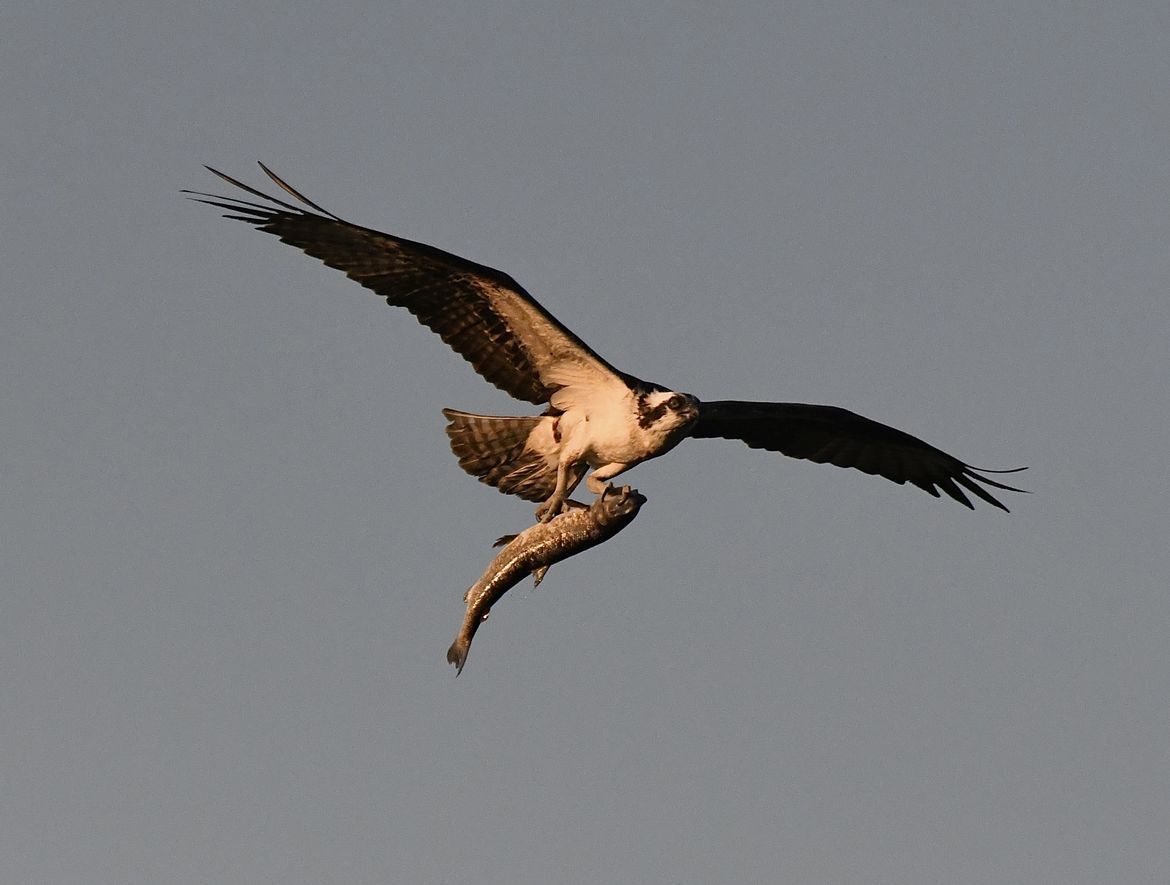 Osprey with a red band trout in Kendall Yards. Taken 7/23/25