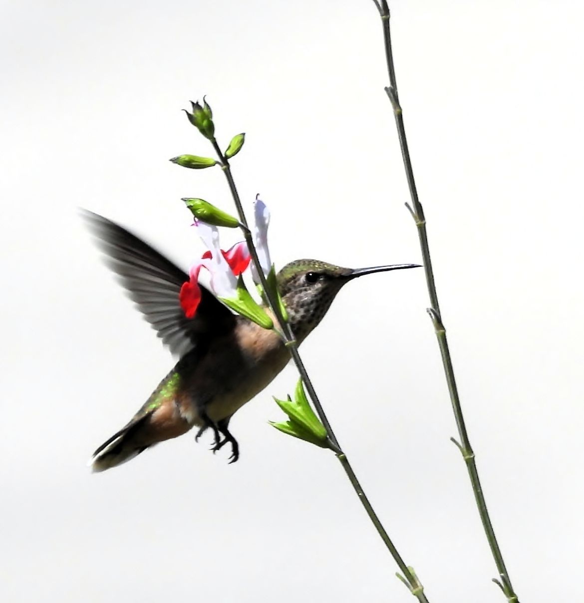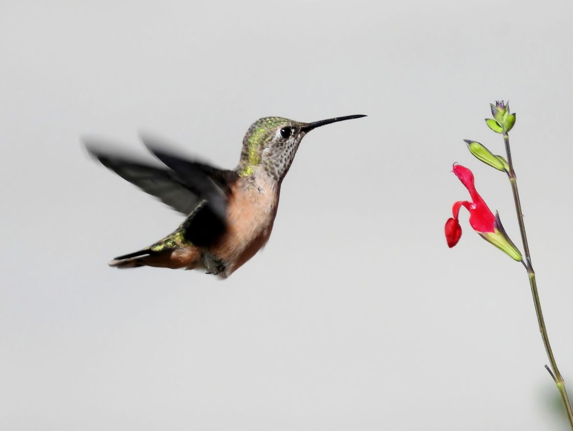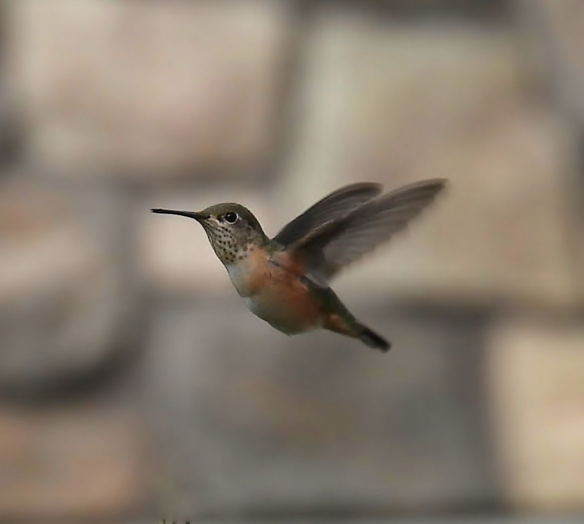 Tiny female Calliope hummingbird.