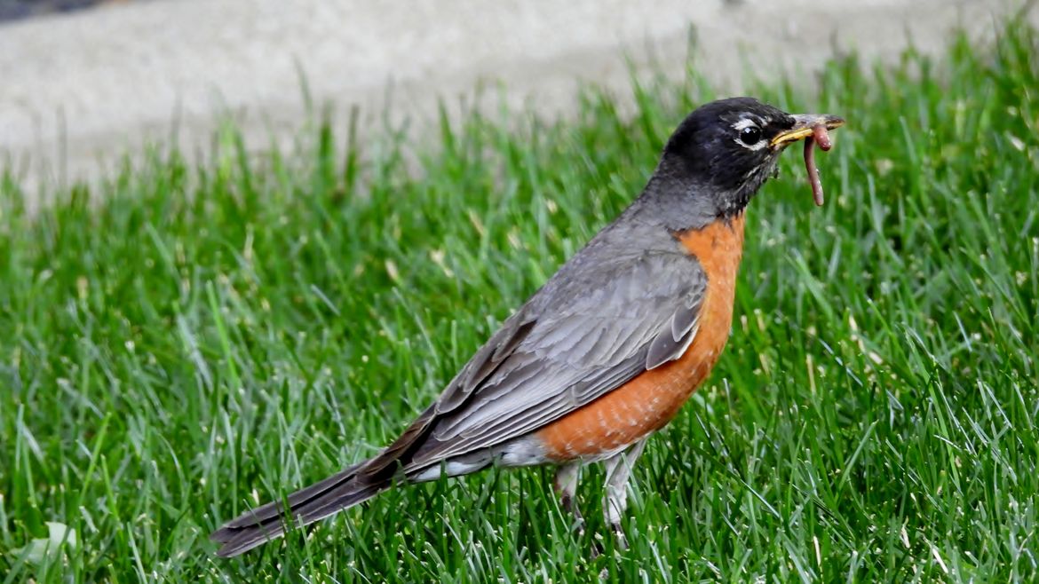 Robin with worm