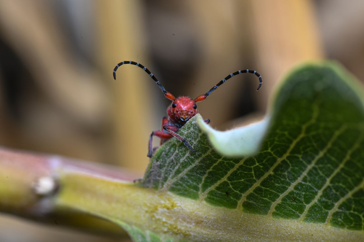 Went looking for Monarch Butterflies on the only patch of Milkweed I know of. Along the Columbia Plateau Trail between the Cheney-Spangle and Cheney-Plaza trailheads. Didn't find any but the appropriately named Red Milkweed beetles are out. Seen mid July.