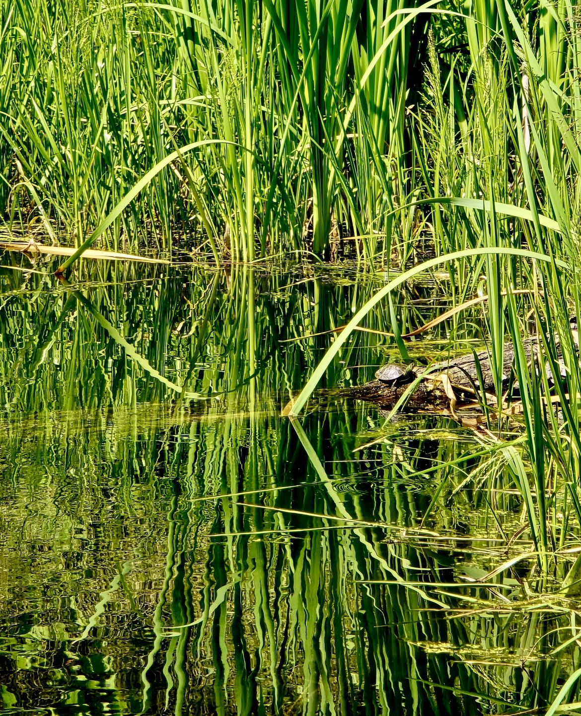 A turtle in a country pond in Pend Oreille County, 7-13