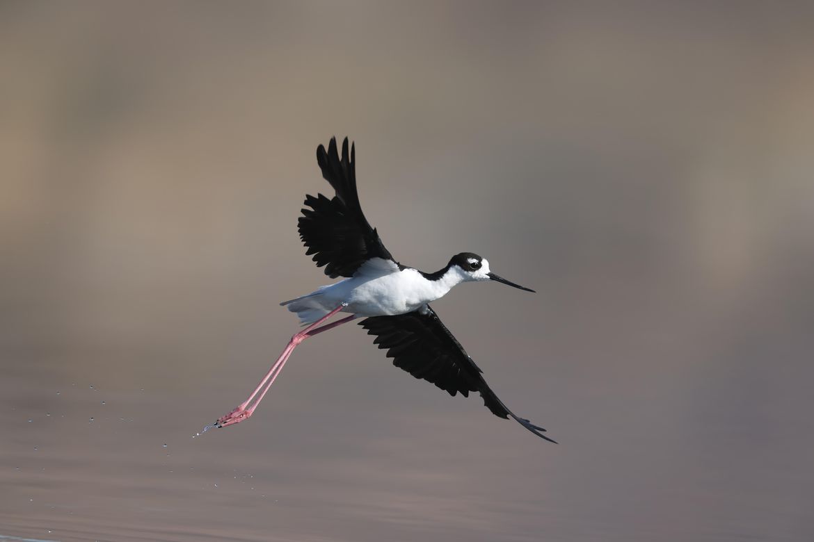 This is the second image from our last birding trip. Once we left the burrowing owls, we went onto Soap Lake and imaged some marsh and shore birds. Gavin captured this image of a "Black-necked stilt," as it took off from feeding in the shallows. The story of Soap Lake could make an interesting editorial story in and of itself for your Outdoors column. It has been known for centuries by local first nation tribes for it's medicinal minerals for bathing in and soothing various ailments. Thank you for your consideration.