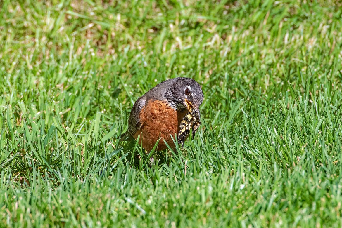 Swallowtail Butterfly's Demise I was surprised to see this Robin catching a Swallowtail in our backyard. Four Lakes, WA June 13, 2025