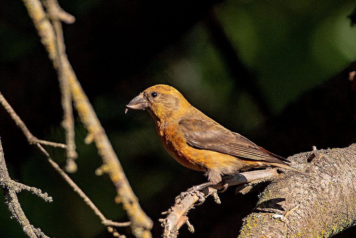 Red Crossbill male June 14, 2025, Four Lakes. A family of Crossbills have moved in; this is the male