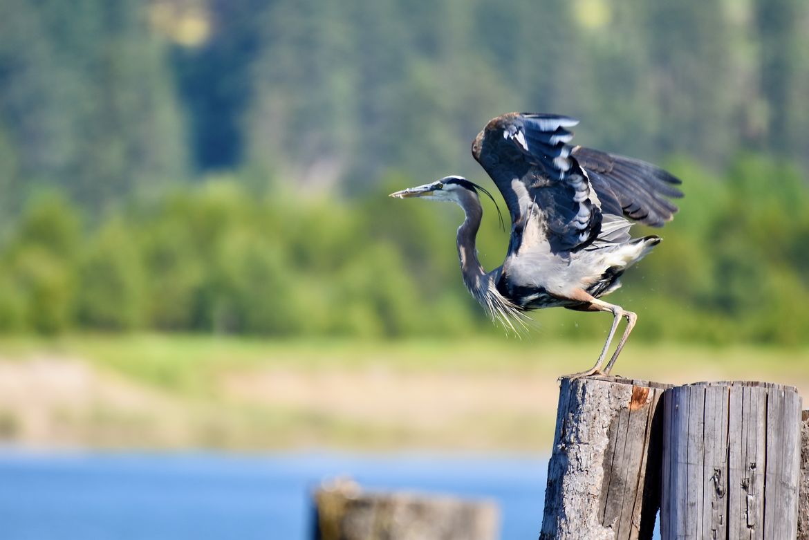 Blue Heron leaving his post after spotting a curious observer, Pend Oreille River, June 16th