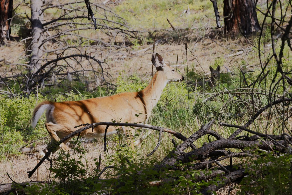 Looks like I wasn't the only one stalking this white-tail deer. Taken at Painted Rock trail, Riverside State Park. 6/26/25