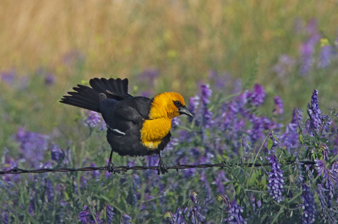 A Yellow headed Blackbird adds to the beautiful color of it's surroundings near Sprague W.A.. Taken on 6 19 2025