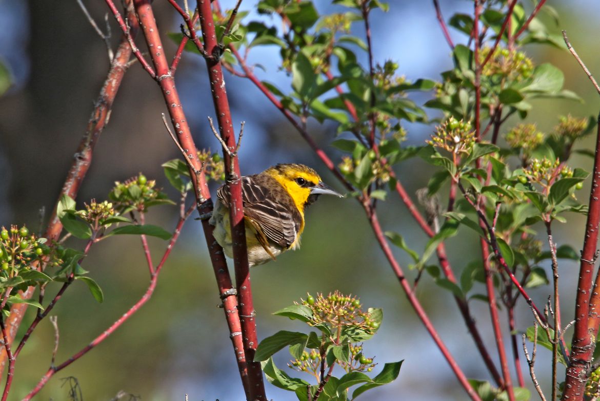 A beautiful Bullock's Oriole ( female ) looking for her breakfast this morning on Turnbull wild life refuge. The male is also very striking.