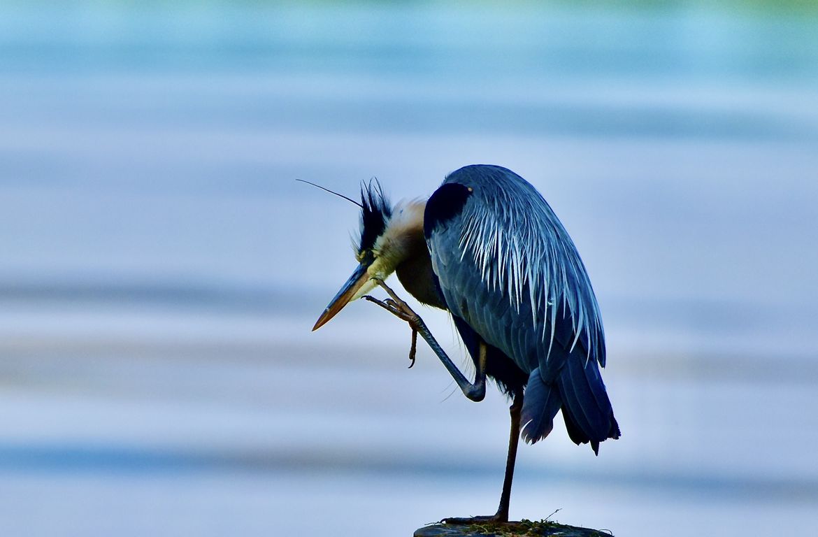 Blue Heron, scratching his head, June 23rd, Pend Oreille River