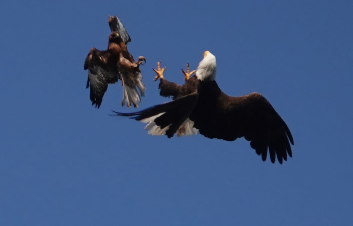 Caught this Eagle and Hawk fighting, Spokane House. May 30th.