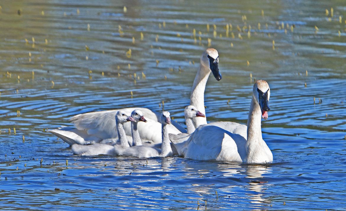 A family of four trumpeter swans makes its appearance at Turnbull Wildlife Refuge. They are thriving and looking healthy!