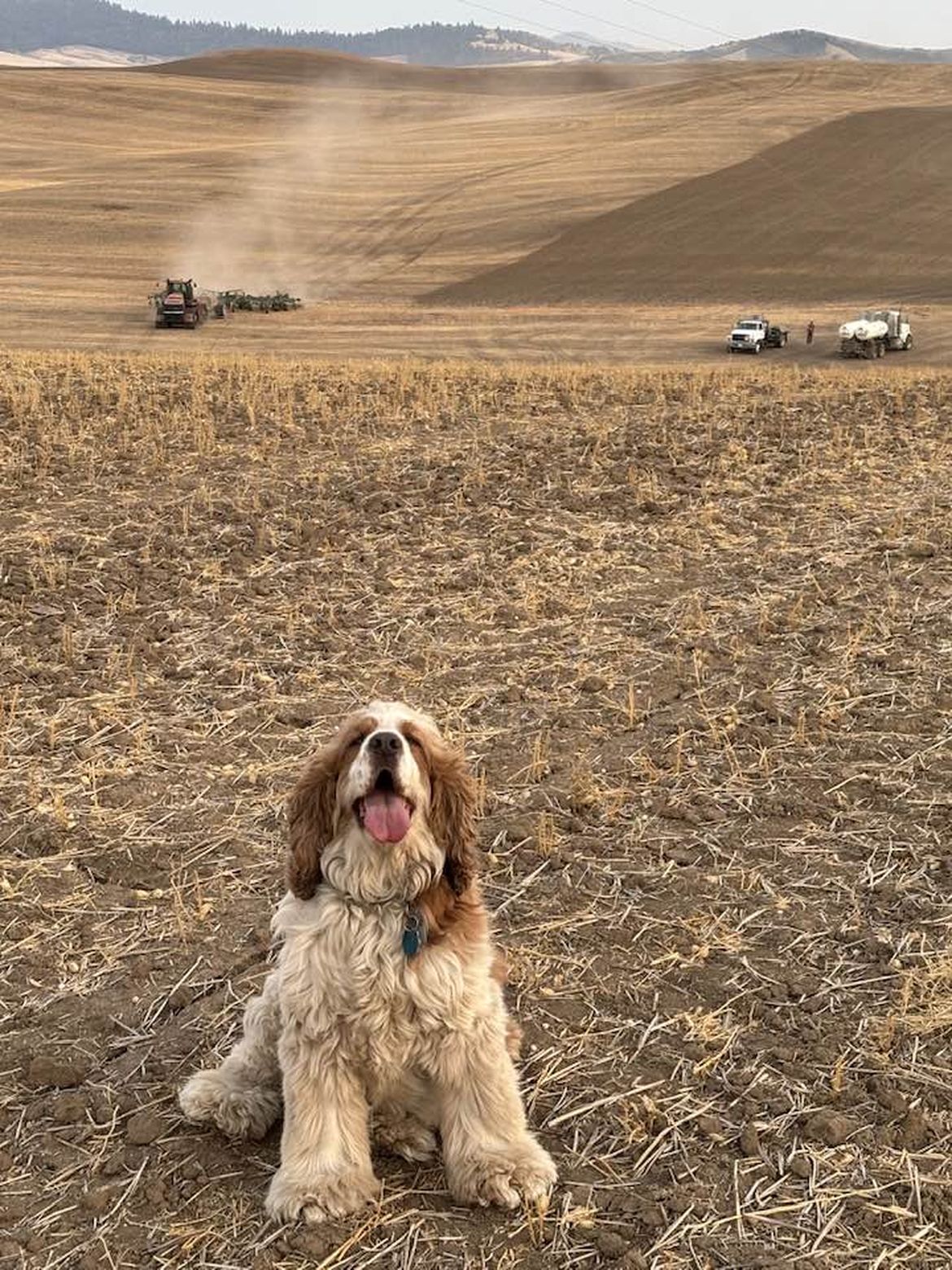 Buddy enjoying harvest with the farmers September 8 just south of Tekoa