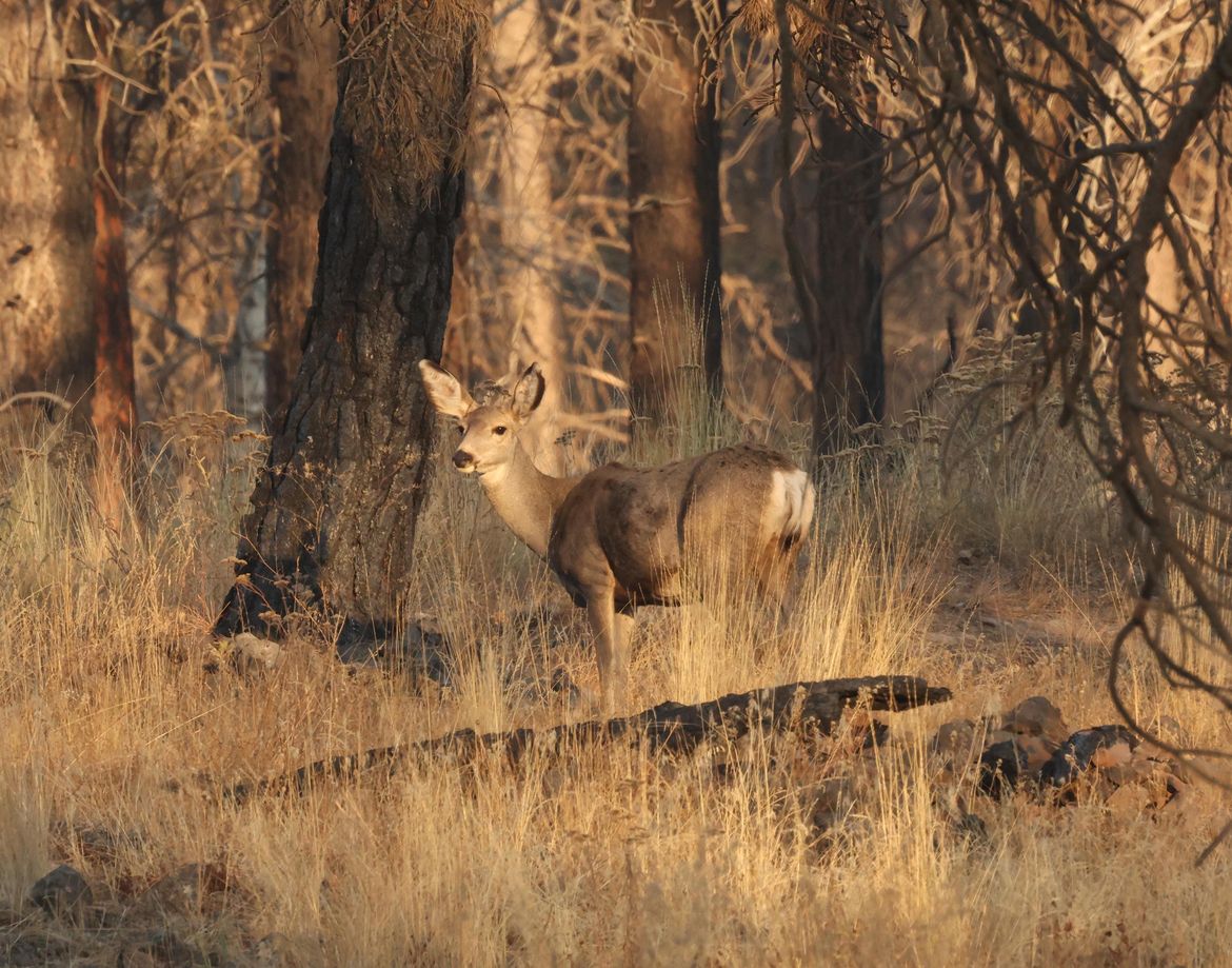 Pastoral fall setting of a mule deer at Turnbull Refuge looking toward the morning sun. Last Sunday, 09-28-25