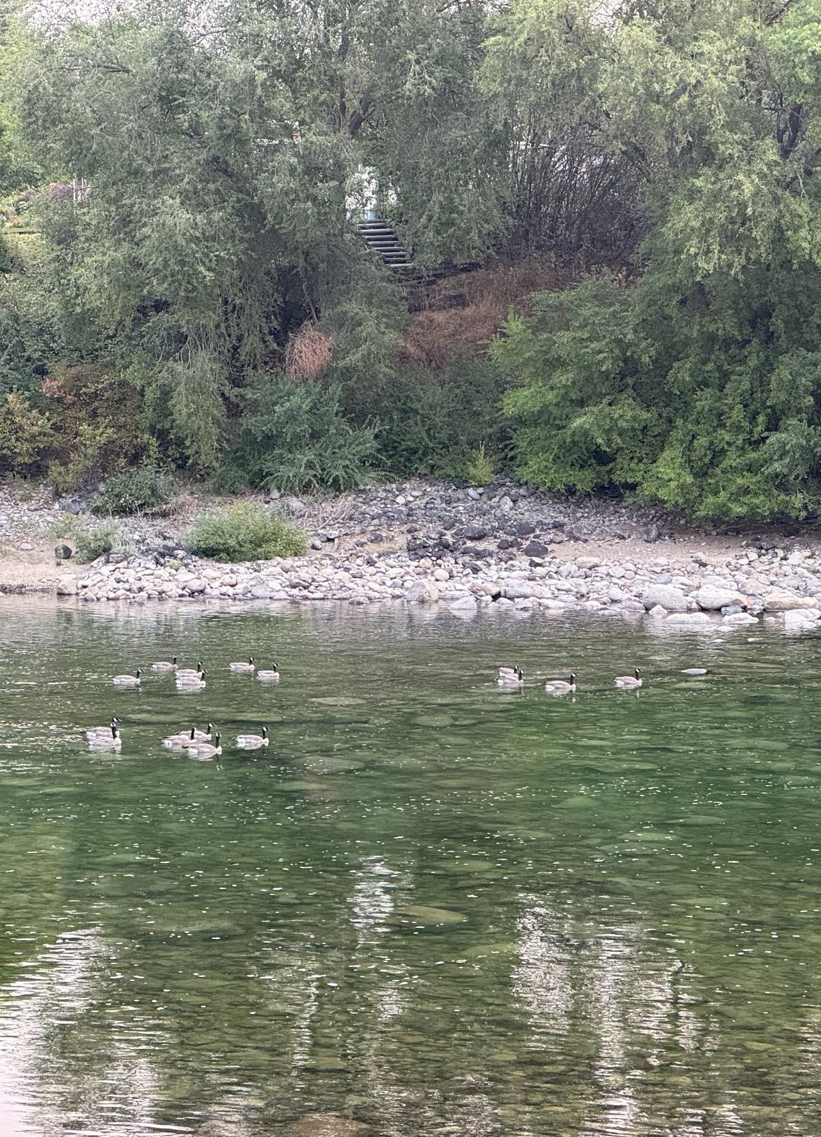The water has returned to the Spokane River near the Barker bridge….along with families of geese.