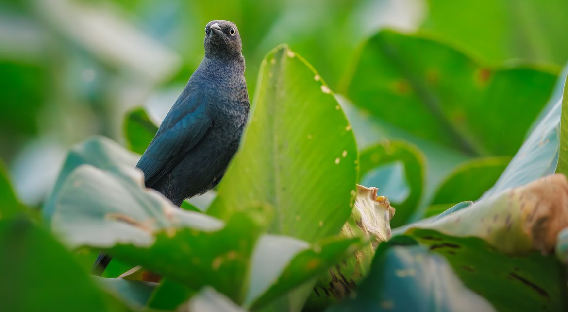 Immature Brewer's Blackbird in the lily-pads at Eloika Lake. (Septemeber 27)
