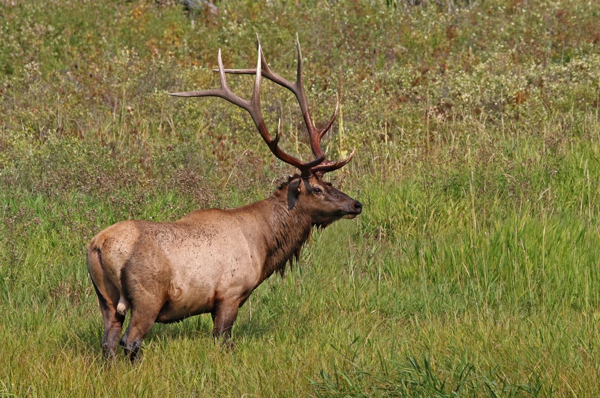 After a cool dip in Mission Creek on the Bison Range this fine bull elk headed for the brush to find some shade. Taken 9 10 2025