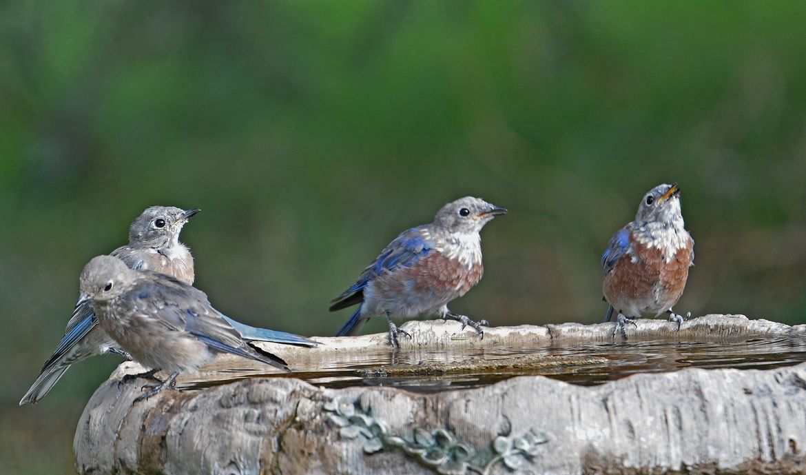 Juvenile bluebirds enjoying their cool bath in this hot weather. September, Four Lakes, WA
