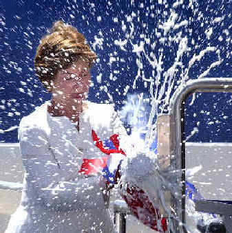 NEWPORT NEWS, Va. – First lady Laura Bush christened a $2.2 billion nuclear-powered attack submarine named after her home state of Texas on Saturday, cracking a bottle of American sparkling wine against the hull on her first try.