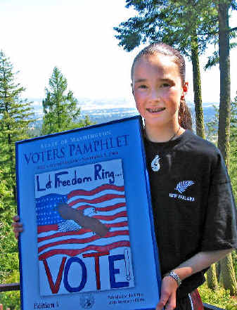 What began as an optional social studies project for 11-year-old Hanna Myers, turned into an award-winning art design that will grace the cover of this year’s Washington State Voters Pamphlet. The pamphlet will be sent to more than 3 million households across the state.