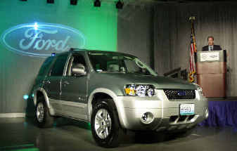 Bill Ford, Ford’s chairman and chief executive, drove the Escape into a roomful of autoworkers at the company’s plant in suburban Kansas City, which will build 20,000 of the vehicles in the 2005 model year. Ford said providing a cleaner-burning, more fuel-efficient vehicle would keep the company competitive as more consumers consider gas prices and pollution when buying a car.