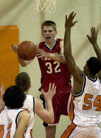 Richardson, a 6-foot-6 junior was at times double-teamed by 6-6 Blackhawks Ben Camp and Matt Brunell. But he made 6 of 7 shots and a free throw by intermission, putting the Eagles up by 15 points.