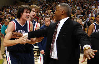 Gonzaga’s Morrison and Missouri’s Jimmy McKinney had to be pulled apart following the game after going chest-to-chest in what appeared to be a heated argument.