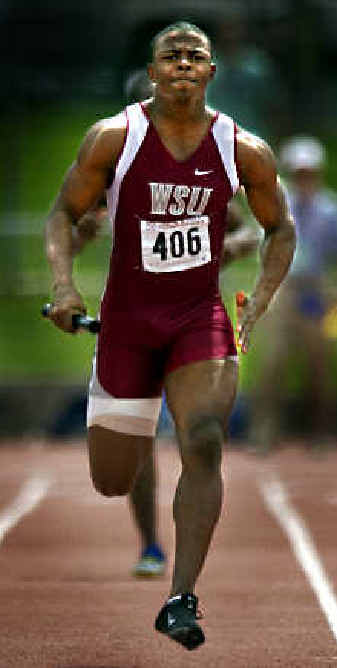 A line of thought emerged that the limited racing – he ran in a couple of meets unattached before the Husky meet – actually may have protected his fickle hams from too much stress, and his performance at Pac-10s didn’t anything to puncture the balloon. But then it stiffened after the prelims of the NCAA regional 100 two weeks later, and while he did manage to anchor the Cougars’ 4x100 relay through the national qualifying process, he wound up seventh in the 100 and qualified for this week’s meet only because of his high placement on the at-large list.