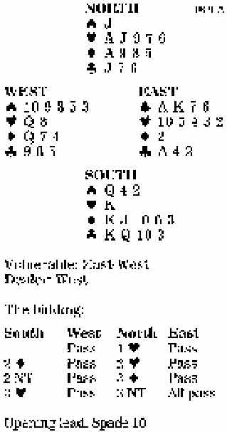 When in due course dummy’s heart ace brought down the queen, he had nine tricks without touching clubs, and a hand for us all to admire – together with a game swing.