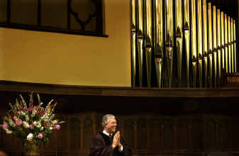 When the Rev. Woody Garvin leads the service at First Presbyterian Church on Sunday, he will conclude by reciting a familiar message: