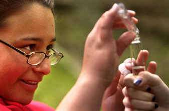 Eighth-grader Allie Lowry rolled her pants legs up, slipped into her friend’s flip-flops and waded into Thompson Creek. She carried a thermometer to record the water’s temperature.
