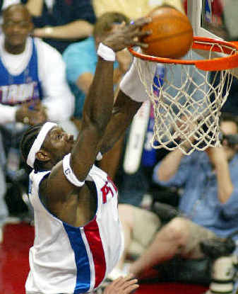 Rasheed Wallace then attempted an inside shot that bounced twice on the rim before falling off, and Ben Wallace was right there to grab it and put it in. Harrington attempted a 3-pointer from the corner, but Rasheed Wallace got a hand on it and Detroit rebounded with 18 seconds remaining to sew up the win.
