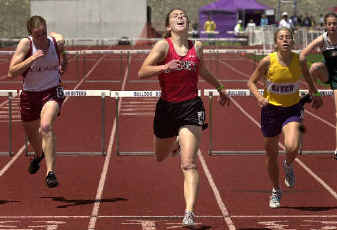 Cheney’s Katie Kimball, shown winning the 300 hurdles, and West Valley’s Rashaad Toussaint were the Greater Spokane League’s only 3A victors.
