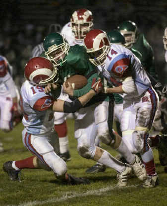 The game initially promised to be a tussle between two teams with an emphasis on defense. EV’s proved as good as advertised with several spectacular plays, countless run-stopping hits and three goal-line stands that by and large rendered West Valley’s offense ineffective.
