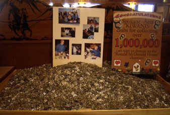 The tabs represent five years of hard work by the West Valley Kiwanis, who have been accepting donations from around the country to reach their goal of a million tabs to donate to the Ronald McDonald House. The house provides a place to stay for families with sick children receiving medical treatment.
