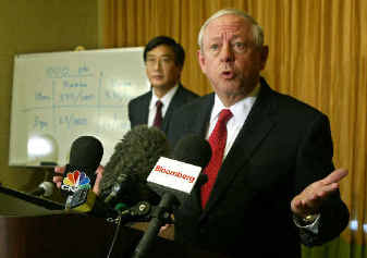 Shares in Merck, one of the world’s biggest drug makers, plunged $12.07, nearly 27 percent, to close at $33.00 on the New York Stock Exchange. That wiped out $28 billion in market value. More than 140 million shares were traded, compared to a daily average below 10 million.