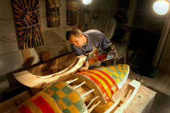 “I like wood and its inherent properties,” Michael says. “You can adhere things to it, pound things into it, cut it, sand it, disguise it, model it and carve it.”