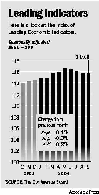 The Conference Board said that its Index of Leading Economic Indicators fell 0.1 percent last month, following declines of 0.3 percent in August and 0.3 percent in July.