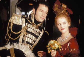 Eileen Atkins plays Miss Matilda Crawley, wealthy dowager sister to Sir Pitt Crawley (Bob Hoskins). Her relatives all want her money, but only Becky is clever enough to turn Matilda’s withering wit back on her. Becky has come to the country with her best friend, Amelia Sedley (Romola Garai), who is smitten with George Osborne (Jonathan Rhys Meyers), a cobra in a red-flocked coat.