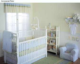 ■ While it might be tempting to use bold, gender-specific colors in a nursery, painting the walls neutral in whites, yellows and greens is the best way to go. You can accent these colors with bright pinks and blues. Keeping the walls toned down makes for an easier transition a few years down the road.