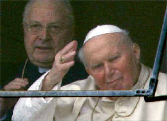 The appearance – in which the seated pope waved and appeared alert – raised hopes he was making progress following a tracheotomy Thursday to ease a breathing crisis. The Vatican had previously announced John Paul would skip his weekly blessing – a 26-year tradition he did not miss even after he was shot in 1981 and recovering from an operation in 1992.