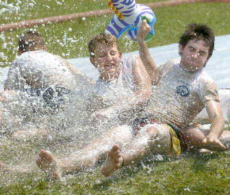 The weather was so hot, Elliott Smith, 10, simply asked Tevin Adams, 11, for a drenching: “Squirt me, Tevin, squirt me!”