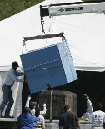 FBI agents Wednesday loaded the mud-caked concrete vault containing Till’s casket onto a flatbed truck and hauled it from a suburban cemetery to the Cook County Medical Examiner’s Office in Chicago for an autopsy. None had been performed before his burial.
