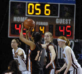 Jami Bjorklund hit a pair of free throws and Angie Bjorklund, who struggled with her shooting for the second straight game, made a 3-point basket as time ran out on the 30-second clock to put U-Hi back up by three points. That set the stage for the game’s ending dramatics and final placing at state for the two GSL schools.
