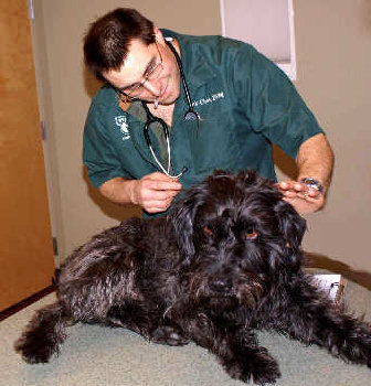 Piper, suffering from an old wound from his days as a stray, turned to a friend for relief. A BB deposited from someone who obviously didn’t recognize the outstanding qualities of such an affable dog, had moved within his leg and now put pressure on a tendon. Dr. Frank Clovis smiled, and with the words “no problem” barely out his mouth, gave the terrier-mix a hug. He then quickly made a small incision and pried the copper ball from beneath the skin. Neither a whimper, nor a jitter from Piper – just a lick of his master’s hand as thanks for the surgery, or more likely, gratitude for the treat which followed.