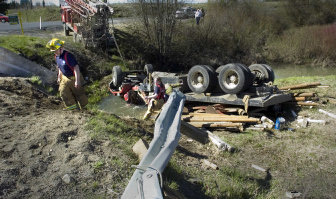 Both trucks were from Green Mountain Construction and Drilling Inc. out of Newman Lake, witnesses said.